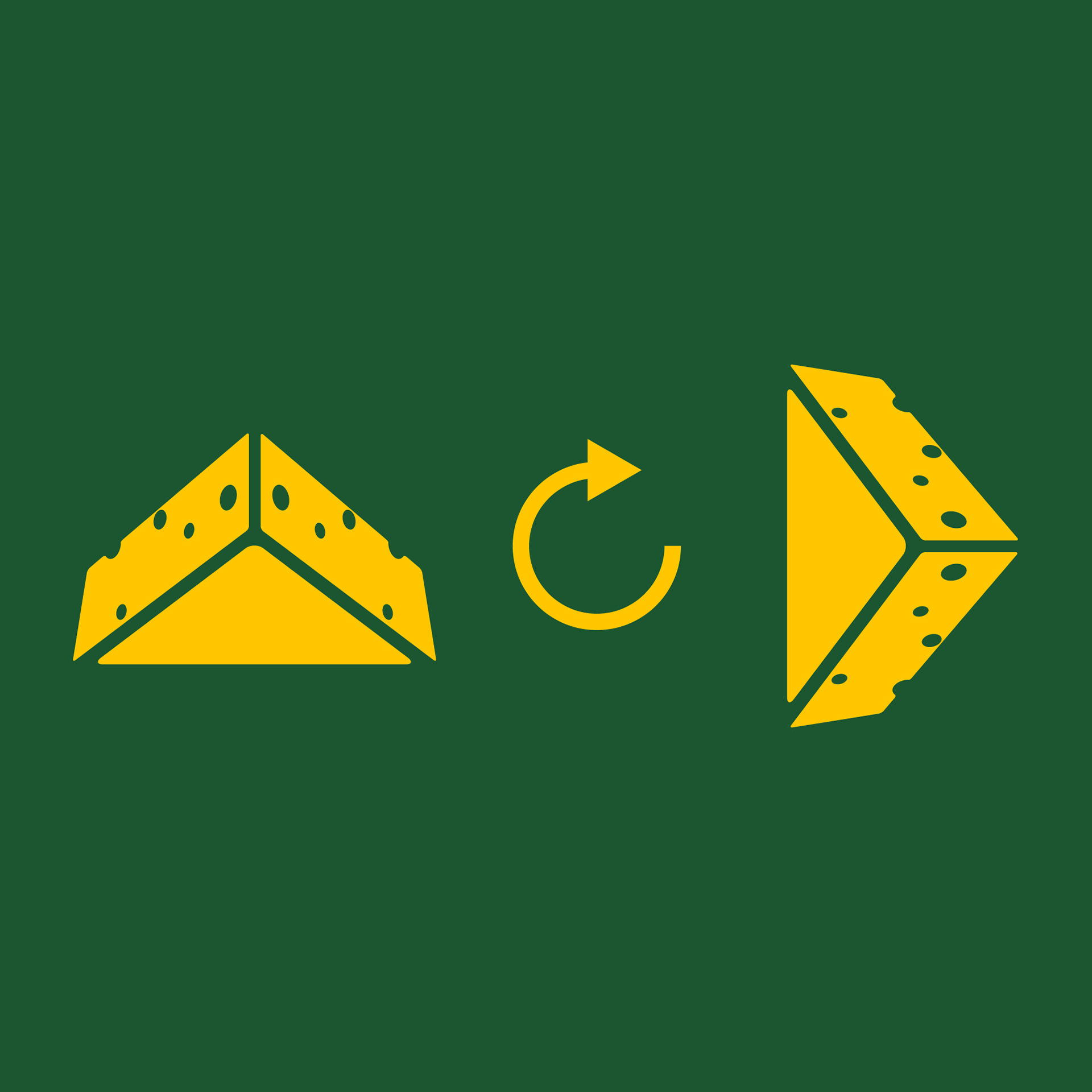 The concept started with a simple image of a Packer "cheesehead" that many fans wear in support of the Green Bay Packers. This image was then rotated 90 degrees, revealing a "play button" triangle shape, all while keeping the look and feel of the "cheesehead".
