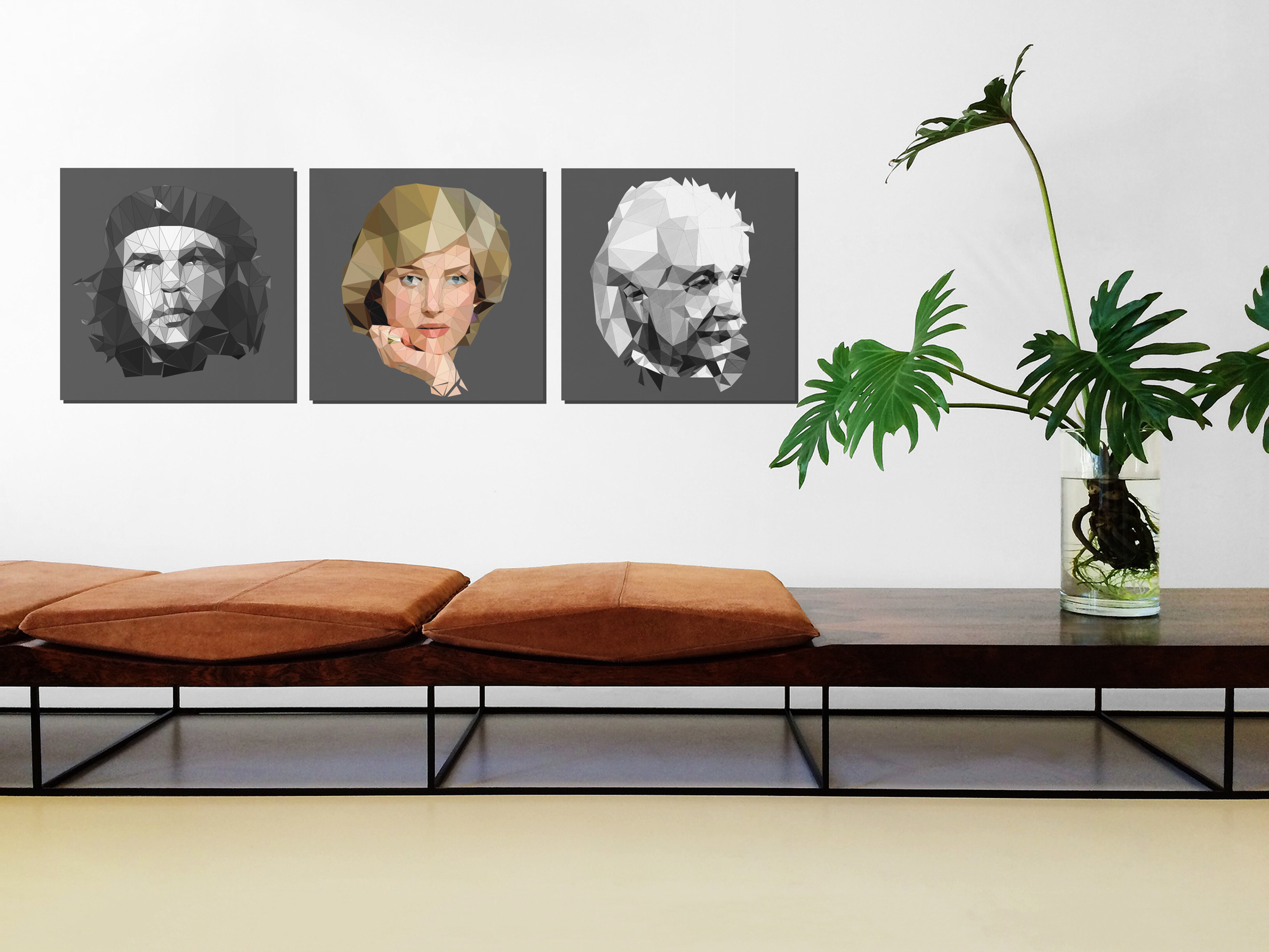 This is a commissioned series of 3 portraits for a client that wanted a 3 piece set that represented a "Cult of Personality". These 3 subjects all hailed from separate cultures, time periods or both.