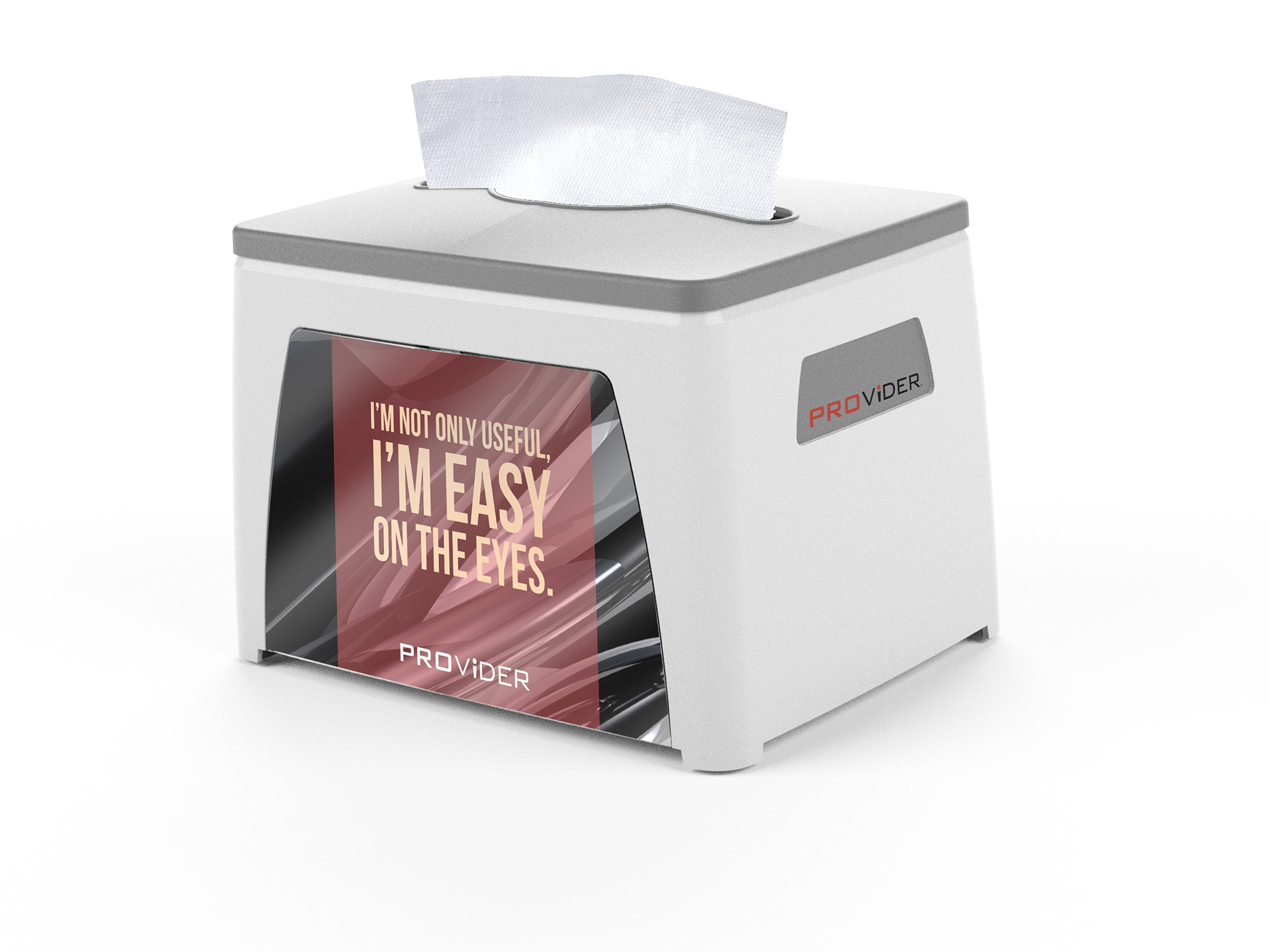 This napkin dispenser is widely regarded as the most aeshetically pleasing napkin dispenser in the market - the copy and design plays off of the smooth lines and shape of the dispenser itself.