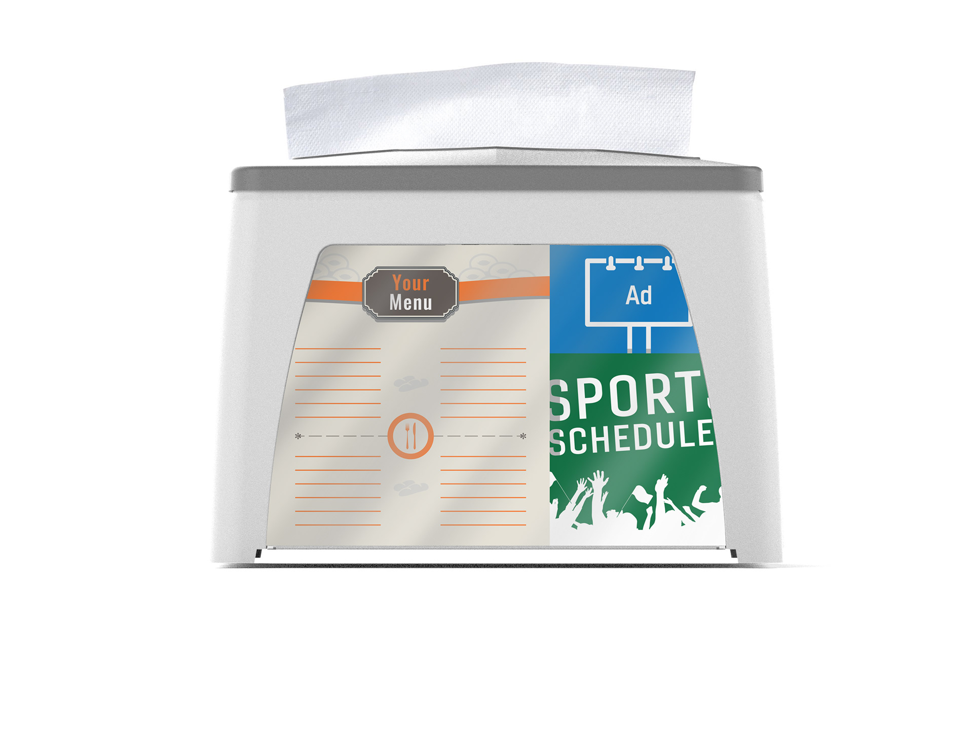 Print inserts can be developed and used to show menus for local restaurants or show advertisements and local sports team schedules. The possibilities are endless!